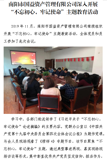 南陽市國益資產(chǎn)管理有限公司深入開展“不忘初心,牢記使命”主題教育活動(dòng)